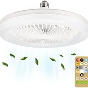 Mini Enclosed Cooling Fan Light with Remote, Dimmable, Speed Adjustable Ceiling Fan Bulb for Garage, Storage Room and Tool Room, AC85-265V