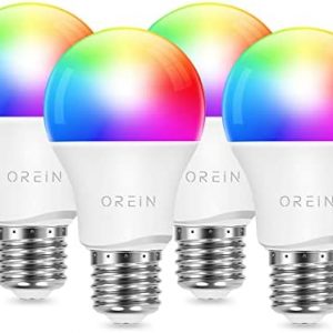 OREiN Smart WiFi Light Bulbs, Dimmable RGBW LED Light Bulbs Color Changing Light Bulb, A19 E26 60W Equivalent, Multicolor Smart Bulbs That Work with Alexa & Google Home, 1800k-6500k, High CRI, 4 Pack