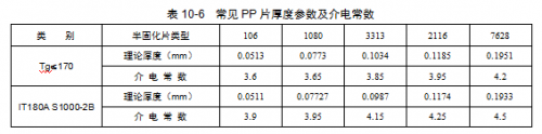 Table 10-6 Common PP sheet thickness parameters and dielectric constants