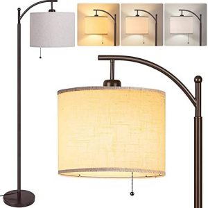 MOFFE LED Floor Lamp, Montage Arc Floor Lamp with Big Linen Lampshade, Classic Tall Standing Lamp Reading Light with 3 Color Temps 9W LED Bulb, Floor Lamps for Living Room Bedroom (Brown)