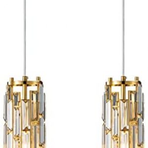 Pendant Lights Modern Gold Pendant Light Mini Crystal Chandelier Pendant Lighting for Kitchen Island Dinning Room Bedroom Kitchen Sink Lighting (Gold 2-Pack)