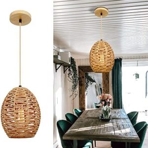 Pendant Lighting for Kitchen Island – Rattan Hanging Lamp Woven Pendant Lights Adjustable Boho Chandelier Hanging Light Basket Light Fixture for Farmhouse Bedroom Living Room