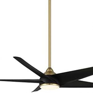 WAC Smart Fans Viper Indoor and Outdoor 5-Blade Ceiling Fan 60in Soft Brass Matte Black with 3000K LED Light Kit and Remote Control works with Alexa and iOS or Android App