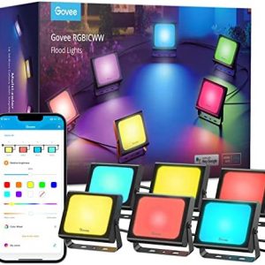 Govee Outdoor Lights RGBIC Flood Lights, LED Landscape Lighting with 28 Scene Modes and 4 Music Modes, Smart Color Changing IP66 Waterproof, App Control, Patio Lights for Garden Yards Walls, 6 Pack