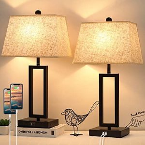 Set of 2 Touch Control Table Lamps, 3-Way Dimmable Bedside Nightstand Lamps with USB Port, Farmhouse Lamps for Bedrooms Living Room Reading End Table with Night Light Miner Lantern, Led Bulbs Included