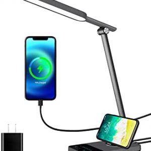 HEISENS Desk Lamp, LED Touch Lamp, Night Light Plus, USB Charging Port, Auto Timer, Memory Function,5 Lighting Modes,6 Brightness Levels, Eye-Caring Table Lamp for Home Office