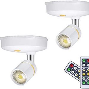 LEASTYLE Wireless Spot Lights Battery Operated Picture Lights Mini Accent Lights Indoor Dimmable LED Spotlight with Remote Stick on Anywhere Rotatable Wall Light(2 Pack)