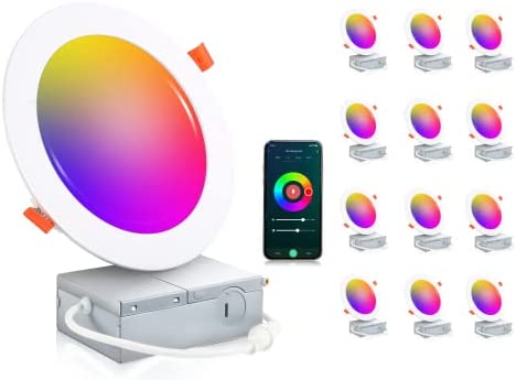 [12 Pack]Cloudy Bay 6inch Smart WiFi LED Recessed Lighting,RGBCW Color Changing, Compatible with Alexa and Google Home Assistant, No Hub Required,15W 950LM, 2700K-6500K,CRI90+ Wet Location,12 Pack