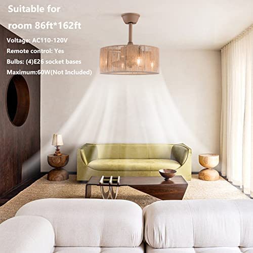 ✦【Unique and Safe Novel Design】Handcrafted wood color nylon thread shade,unique to say the least, thecomposition of cage ceiling fan is quite striking, combining modernity and elegance in one. Perfect design to illuminate your space, whether it is a kitchen island, dining room, bedroom, foyer or any other place.