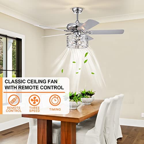 52 Inch Ceiling Fan with Lights, Modern Chandelier Ceiling Fan with Remote Control,Smart Ceiling fans with Timer/3 Speeds, Chrome