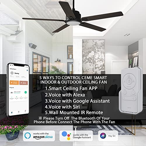 5 Ways to Control: This ceiling fan with lights and the remote controller, you will not lost control to the indoor and outdoor ceiling fan even when the WiFi signal lost ; Control you modern ceiling fan and DIY the fan setting from any distance via the mobile phone app; Also, this smart ceiling fan can work with Alexa Siri &Google Assistant. “Alexa, set the black ceiling fan in bedroom to speed 8, set yellow light to 78% and set the white light to 54%.”