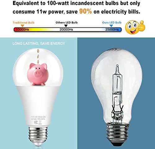 90% Less Bill Cost: Our 11w warm white auto ON-OFF led bulbs provide the same brightness of 100W incandescent bulb but cost less 90% bills than traditional bulbs (only 1.4 USD per year, for incandescent needs 12+USD per year), take it to save your bills now!