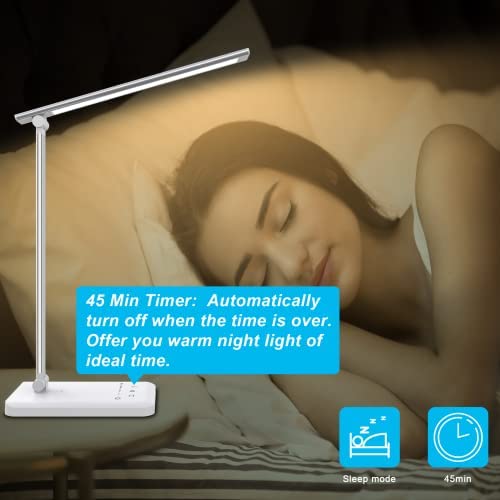 Aourow Desk Lamp LED Dimmable: Table Lamp with 5 Light Modes and 5 Brightness Levels for Home Office, Touch Desk Light with 45 Minute Timer for Bedside Reading, Kids Bedroom, White