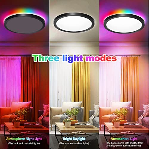 【16 Million Color& Multi-functions】This RGB ceiling light supports 16 million colors and comes with multiple functions such as mode switching/music sync/timer function/DIY settings, which can make your life more interesting. This led smart ceiling light can be controlled remotely, so even if you are not at home, you can control the light anytime and anywhere.