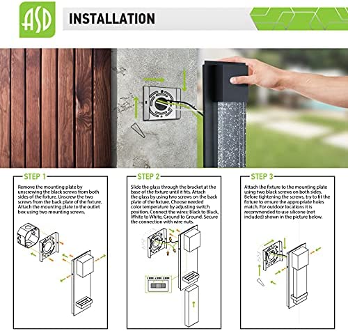 ASD LED Wall Light Fixture | Modern Crystal Bubble Glass Sconce | 18″ 11.5W (120V) 500Lm 3000K/4000K/5000K Adjustable | Outdoor & Indoor Lighting, Dimmable, Waterproof, ETL Listed | Black, 2 Pack