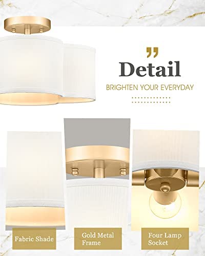 Audickic Gold Semi Flush Mount Ceiling Light, Close to Ceiling Light Fixtures with Fabric Shade in Quatrefoil Shape, Farmhouse Brass Ceiling Light for Kitchen Dining Hallway Bedroom, AD-22007-4SF-GD
