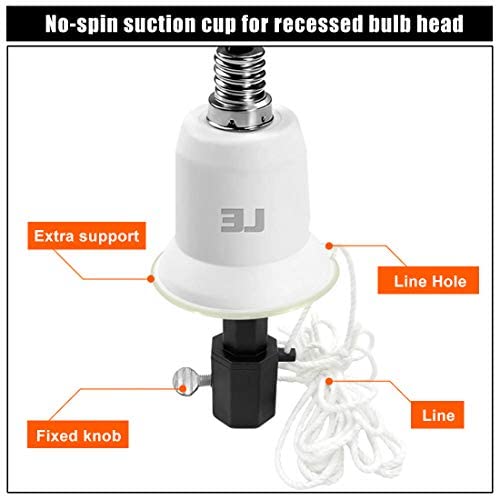 Bulb Remover Tool – Suction cup can be perfectly fitted to the key part of the lamp, rotated and taken out bulb, and pull the rope on the suction cup to release the pressure. Lamps that cannot be fixed by the suction cup, can be put in a plastic basket which helps to hold the bulb more firmly.