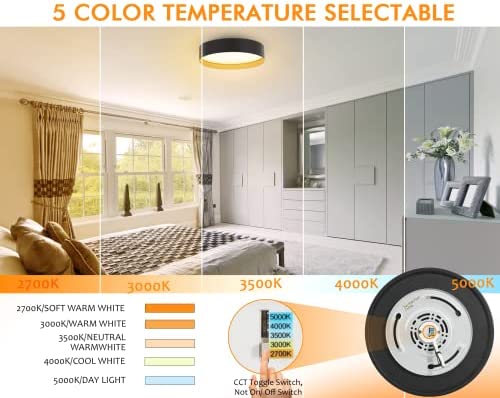 CLOUDY BAY 5CCT 13 inch 25W LED Flush Mount Ceiling Light Fixture,Matte Black with Gold Inside,2700K/3000K/3500K/4000K/5000K Selectable,120V CRI90+ 2000LM,Dimmable