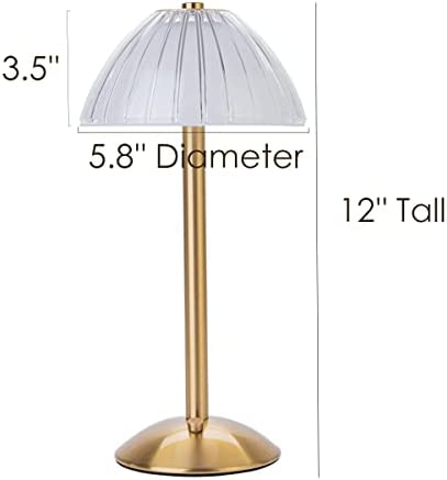 -Inspired by 1950‘s lamps and a mood lighting which is soft and warm. Table lamp with a sturdy brass gold base topped with a white sturdy acrylic shade(not glass). 12” Tall.USB charging,cordless table lamp can be take to anywhere you want.Such a lovely lamp to decor your coffee table,dining table,side table or outside patio.