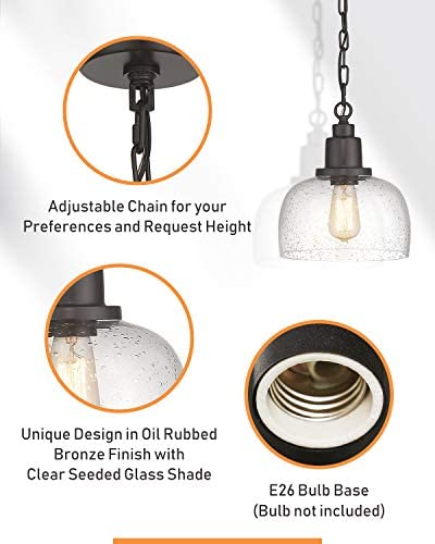 Eapudun Modern Farmhouse Pendant Light, 1-Light Industrial Hanging Light Fixture 9.3-inch, Oil Rubbed Bronze Finish with Clear Seeded Glass Shade, PDA1127-ORB