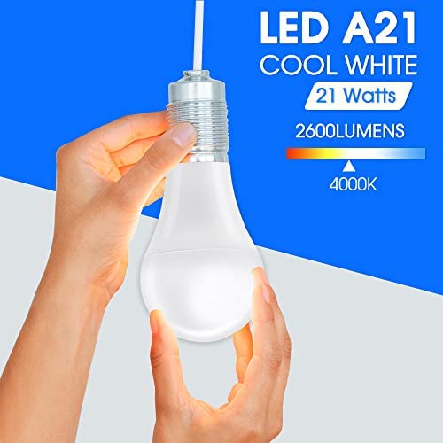 ENERGETIC SMARTER LIGHTING A21 LED Bulb Dimmable, 2600LM Super Bright Light Bulbs, 21W=150W, Cool White 4000K, UL Listed, E26 Base, Damp Rated, 2 Pack