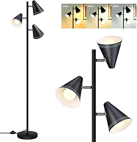 Farmhouse Floor Lamp,Standing Tall Pole Lamp,3pcs 9W LED Tree Floor Lamp,3-Color Temperature,Adjustable Metal Lampshades,Footswitch,Industrial Floor Lamp for Living Room,Bedroom,Home,Black