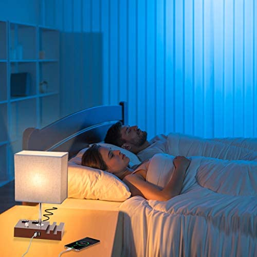 Upgraded Lamp 2 USB Charging Ports + 2 AC Outlets: Always in shortage of charging port? This bedside lamp with USB ports (5V/2.1A when single USB are using), it can be a good phone charging station organizer for smartphones, tablets etc. 2 power outlets provided more power for your other electric devices