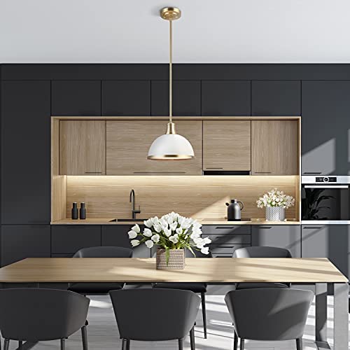 Globe Electric 60824 Beckett 1-Light Pendant, Matte White, Matte Brass Accents