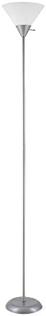 FROSTED SHADE: the white frosted plastic shade blends perfectly with the torchiere style lamp to create a warm light spread