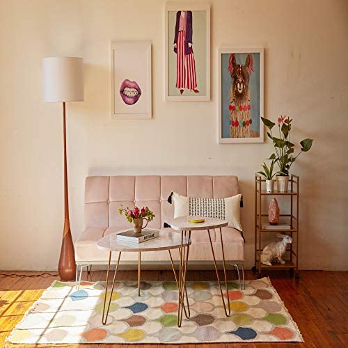Globe Electric 67225 65″ Floor Lamp, 2-Tone Faux Wood Base, White Fabric Shade, Socket Rotary Switch, Floor Lamp for Living Room, Floor Lamp for Bedroom, Reading Lamp, Home Office Accessories