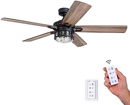 The innovative 5-blade design provides ultra-efficient, adjustable and energy efficient airflow while the dimmable LED lights provide ideal lighting to fit any mood. Control your Honeywell ceiling fan with a touch of a button with our easy-to-use ceiling fan remote control with wall mount option (batteries included).