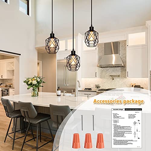?【Sleek & Unique Outlook】Recalling industrial age, each hanging pendant lighting accented geometric metal shade with crisp black hue, accentuates vintage appeal of interior area. Openwork design allows the light spread throughout the room, ideal for entryway, hallway, foyer, dining room.