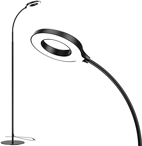JKSWT LED Floor Lamp, 3 Brightness Levels Eye-Caring Dimmable Standing Reading Lamp 4000K Colors temperatures with Adjustable Gooseneck for Living Room Bedroom Reading – Black