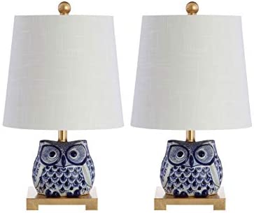 JONATHAN Y JYL3014A-SET2 Justina 16″ Ceramic Mini Table Lamp(Set of 2) Cottage,Transitional for Bedroom, Living Room, Office, College Dorm, Coffee Table, Bookcase, Blue/White