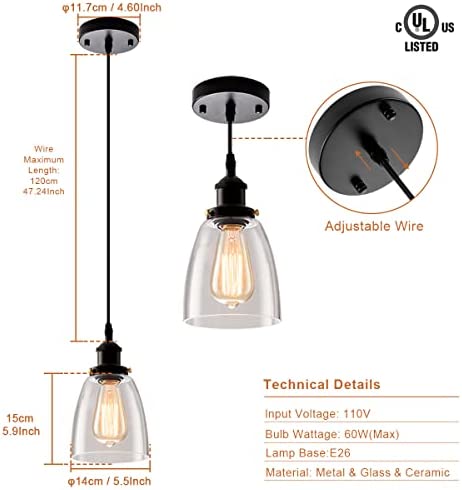【High Safety Coefficient】 The lamp holder-a INNOVATIVE usage of CERAMIC (flame retardant material), provides electricity safety guarantee. The pendant light comes with UL Listed.