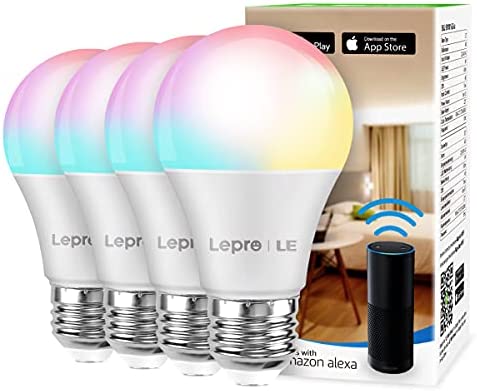 LE Smart Light Bulbs, LED Color Changing Lights, Works with Alexa and Google Assistant, RGB & Soft Warm White, 60 Watt Equivalent, Dimmable with App, A19 E26, No Hub Required, 2.4GHz WiFi Only, 4 Pack