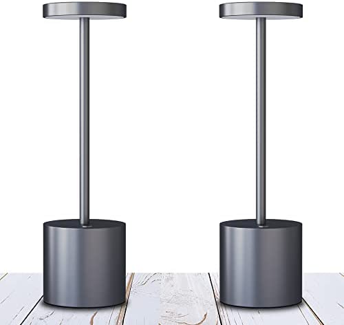 LED Cordless Table Lamps Set of 2, Portable Rechargeable Battery Powered Lamp, Metal 2-Level Dimmable 5000mAh Battery Table Lamps,Table Light for Outdoor/Patio/Restaurant/Bedroom/Home. (Grey)
