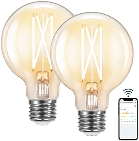 Linkind G25 Globe Smart Edison Bulbs, 2700K-6500K Tunable and Dimmable WiFi Edison Bulbs, 8W(60W Equivalent) Vintage Light Bulbs 800lm, Compatible with Alexa & Google Home, 2-Pack