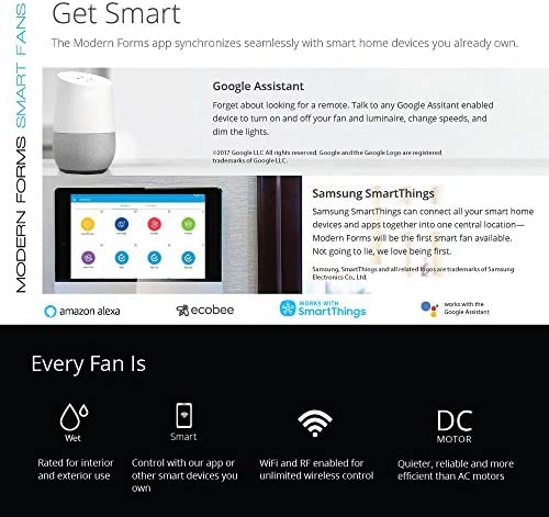 Modern Forms Fans pair with the smart home tech you know and love, including Google Assistant, Amazon Alexa, Samsung Smart Things, Ecobee, Control4, and Josh AI. Coming Soon: Savant, Lutron Homeworks, and Nest.