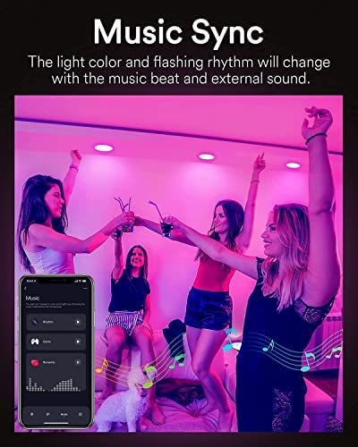 【Brightness & RGBWW Adjustable】Lumary smart wifi recessed lights supports warm white and cool white adjustment from 2700K to 6500K, 16 million RGB colors and 1%-100% dimmble brightness to fit any mood or decor. Multi preset scene modes and DIY scenes to fits any occasions.