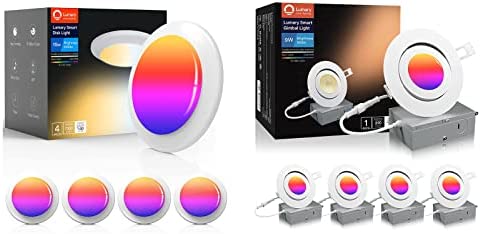 Lumary Smart LED Surface Mount Disk Lights+Lumary Smart Recessed Lighting 4 Inch – 9W 810 Lumens Canless WiFi Recessed Downlight