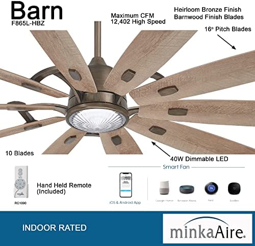 MINKA-AIRE F865L-HBZ Barn H2O 84″ Smart Outdoor Ceiling Fan with LED Light and DC Motor in Heirloom Bronze Finish Works with Alexa, Nest, Ecobee, Google Home and iOS/Android App
