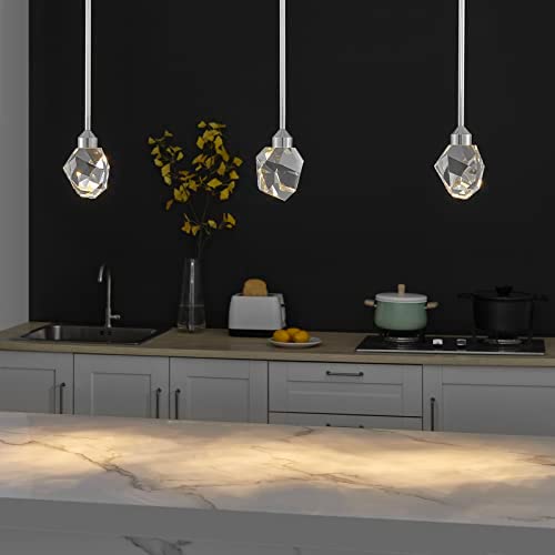 Modern Crystal Pendants LED Hanging Light Fixtures, Diamond Cut Pendant Lights Dimmable, Crystal Pendant Lighting for Kitchen Island, Modern Drop Lights for Bar. (Polished Nickel)