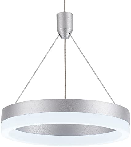 Modern Nickel Led Ring Pendant Lighting Fixture, 7.87″ Dimmable Circular Ring Pendant Light for Kitchen Dining Room Bedroom Foyer Hallway Bar, 15W 6000K Cool White