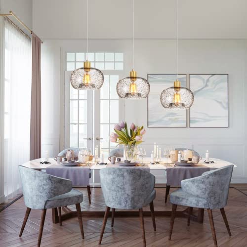 Modern Pendant Lighting for Kitchen Island, Adjustable Kitchen Light Fixtures with Handblown Seeded Glass Shade, Hanging Lights for Dining Room, Living Room, Bedroom, Bar, Gold Finish,9 Inch,1 Pack