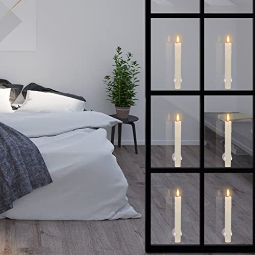 NOMFIX Ivory Flameless Taper Candles with Remote Timer, 7.48 Inches Drip Wax Look Flameless Candlesticks, Battery Operated Led Window Candles with 3D Wick for Fireplace Xmas Christmas-6 Pack