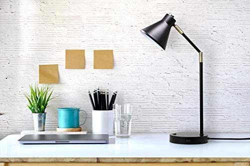 O’Bright LED Desk Lamp with USB Charging Port, Metal Lamp, Flexible Swivel Arms, Soft White LED Reading Light (3000K), Bedside Reading Lamp, Office Lamp, Table Lamp, ETL Listed (Black)