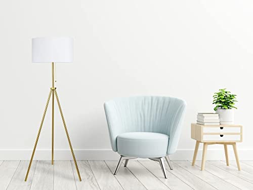 O’Bright Tripod Floor Lamp, Adjustable in Height, 100% Metal Body with Linen Drum Shade, E26 Socket, Bedside Lamp, Standing Light for Living Room, Bedroom, Office, Antique Brass