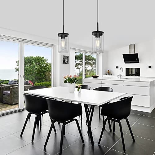 OUVR Pendant Lighting for Kitchen Island, 2 Packs- 60W Pendant Lighting Black Farmhouse Pendant Light Fixtures with Adjustable Cord for Kitchen Island, Bedroom, Dining Hall, Bathroom…