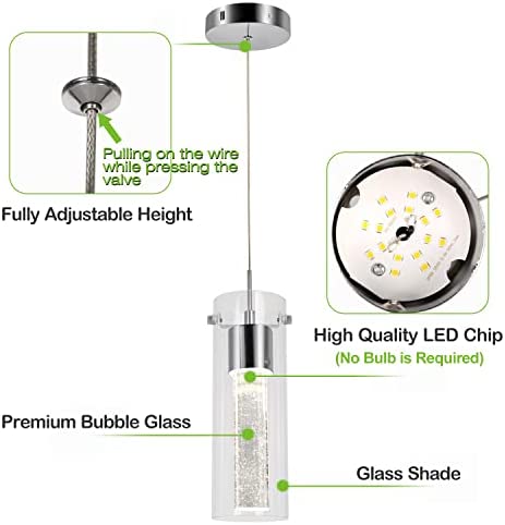 Pendant Light, 1-Light Integrated LED Kitchen Lighting, 8.5W (40 Watt Equivalent), CRI 90+, 640lm Premium Bubble Glass with Chromed Finished, ETL Listed